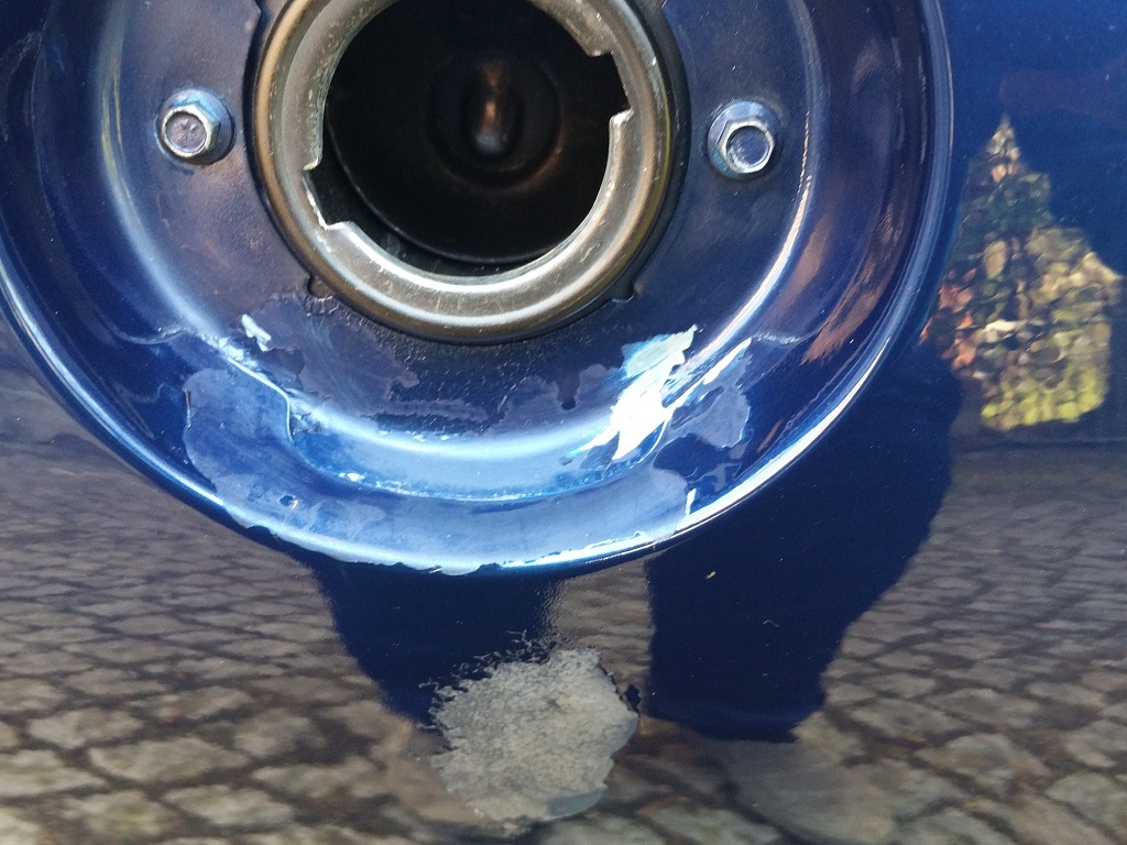Die Blende hält nur unter großer Spannung auf den letzten Gewindegängen. Habe mir Hülsenmuttern gekauft um das Problem zu lösen. Bei Versuch das Blech zu richten, ist halt der Lack und teilweise der Filler ab, was man bei montierter Blende schlecht sehen kann. Allgemeinzustand:Dateianhang: