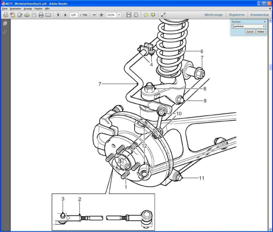 Die Schraube 11 wird kein "Spiel" haben, wie gesagt ist dort im Auge des Unterlenkers ein Kugelgelenk, das ausgeschlagen ist. Sozusagen ein Metallball mit Loch in der Mitte, und am Ende von der Stange ist dann eine passende Buchse für den Ball. Deshalb sind da auch die Gummis drauf. Wenn die verschlissen sind, dringt Dreck&Wasser ein nd das Gelenk ist binnen kurzer Zeit fratze.