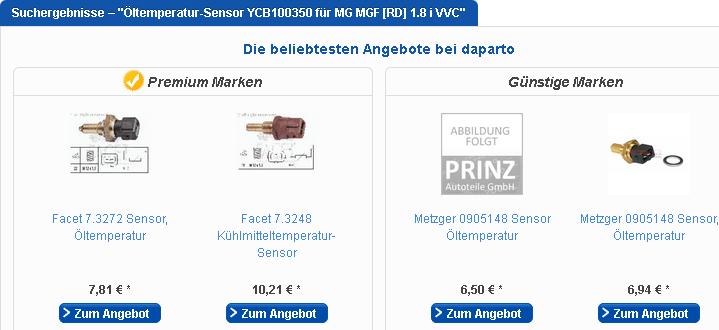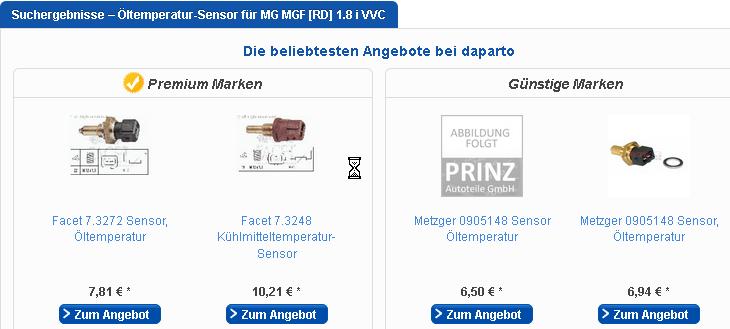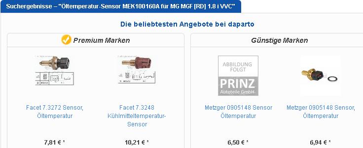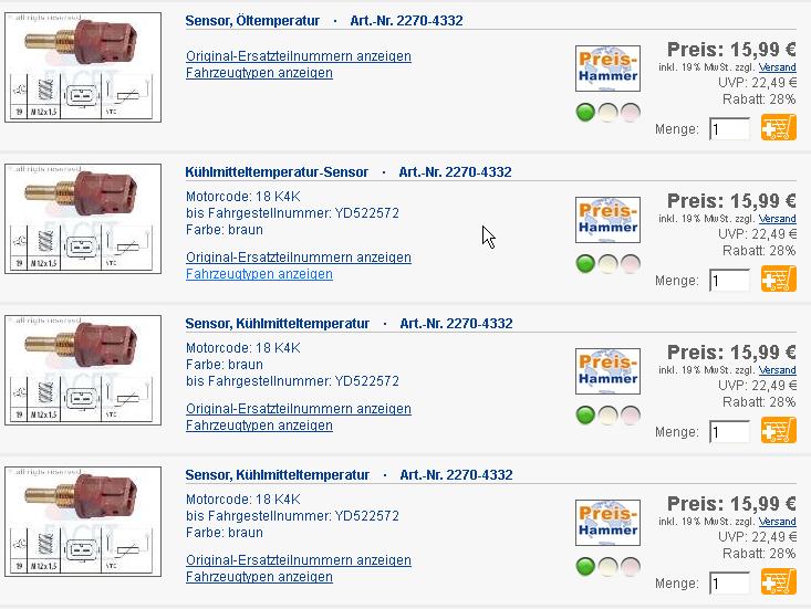 nun ja, ich krieg bei daparto zu allen drei Reihen dasselbe! Teil angezeigt, nur dummerweise noch ein zweites. Bei kfzTeile24 krieg ich ein und denselben als Öltempsensor und als KM-Tempsensor ausgewiesen, jeweils mit andren Fzgen dazu. Das muss sich wer ausgedacht haben, der mich ärgern will! Dateianhang: