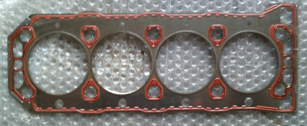 Kopf ist runter. An der Kopfdichtung und im Brennraum konnte ich keinen Fehler feststellen. Es war die Metalldichtung mit den roten Gummis verbaut, welche ist das? Was mir aufgefallen ist: Eine Kopfschraube kam mir loser vor wie die anderen und eine ging schwergängig herauszudrehen.