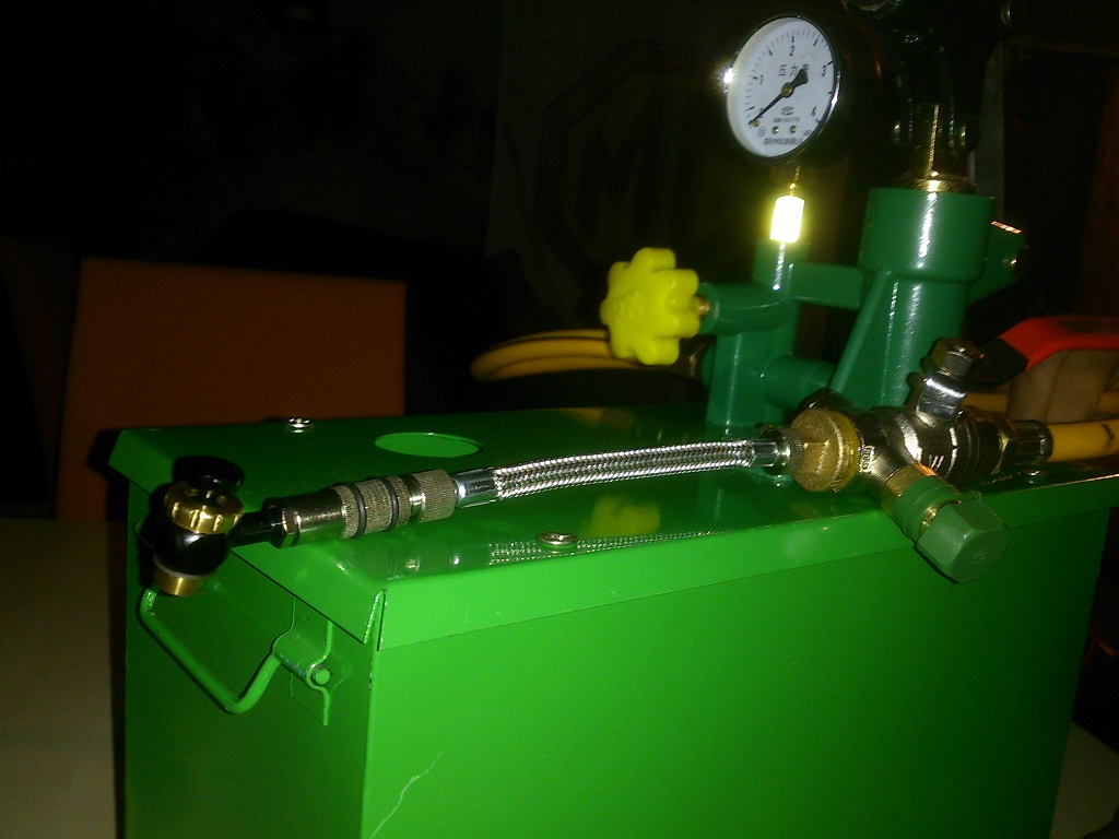 Dank euren Beschreibungen ist unsere Pumpe nun auch soweit fertig inkl. Vakuum. Als kleine Verfeinerung hab ich noch einen Adapter beim Fahrrad Zubehör gefunden der einen zusätzlichen Hahn zum Ventil drücken hat so wie es bei der Originalen Pumpe auch der Fall ist angeblich hält er 30bar aus, was ausreichen sollte. Finaler Test ist wenn mein F fertig ist aber ich denke das sollte alles so passen.