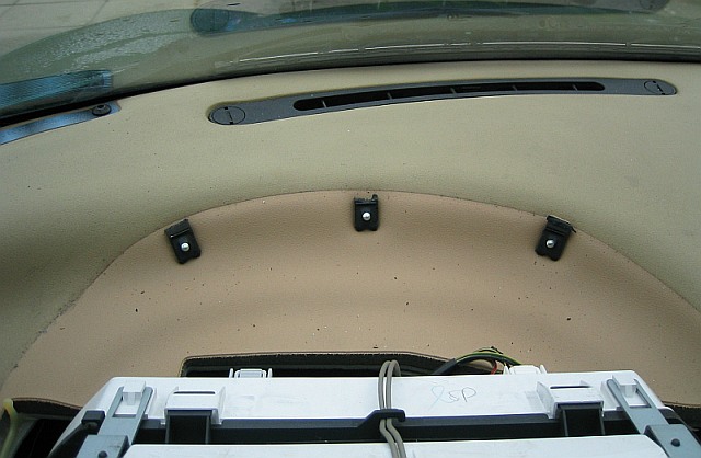 ähm also da kannst das ganze Armaturenbrett ausbauen an die drei Schrauben kommst so oder so nicht ran  also Karosseriekleber drauf und die Haube wieder festkleben und die Materialkosten schrecken dich nicht ab ?? da es die Hutze ja nur komplett gibt mit Armaturenbrett bist locker 1200€ los wenn es das in der Farbe überhaupt noch gibt