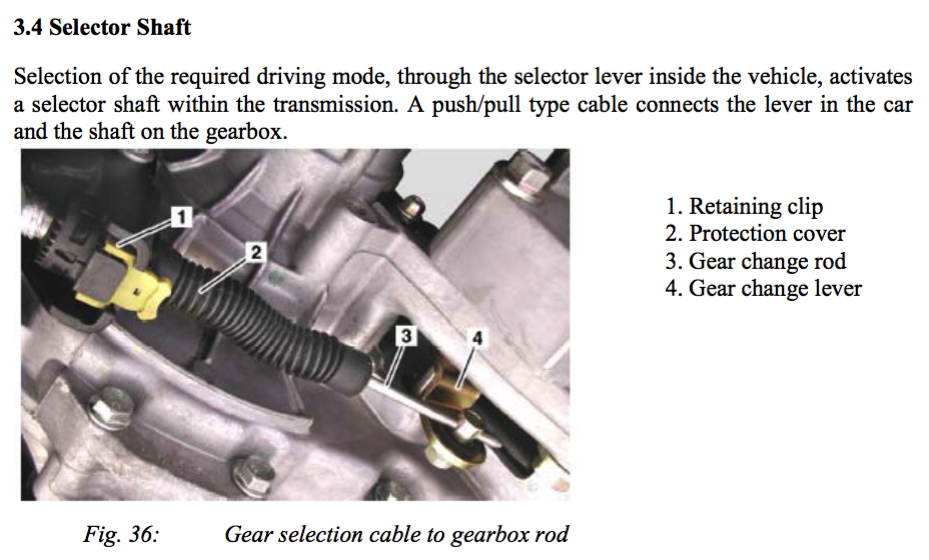 Das Kabel geht auf einen Umlenkmechanismus und von dort dann über eine Stange zum eigentlichen Wählhebel. An dem ist eine Klemmverbindung. Dateianhang: