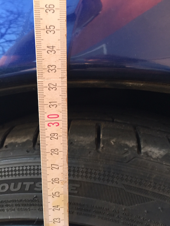 Danke für Deine Antwort crimak42. Werde morgen nochmals bei der Werkstatt vorbeifahren und hoffen, dass die mir meinen Kleinen möglichst kostenfrei wieder "hoch"-pumpen Man misst doch bis zum Radhaus? Oder nimmt man die lackierte Stelle des Kotflügels zum Messen? Da der Techniker vom Boden aus misst, werde ich ihn bitten, die 605mm (=320mm v.d. Narbe) auf 651mm (366mm, morgen gibt es 14°C Sonne in Köln  ) zu korrigieren. Danach vereinbare ich gleich mal einen Termin zum Einstellen der Spur. Hat da jemand auch noch einen guten Tipp im Kölner Raum? Liebe Grüße und vielen Dank Euch! Tobi