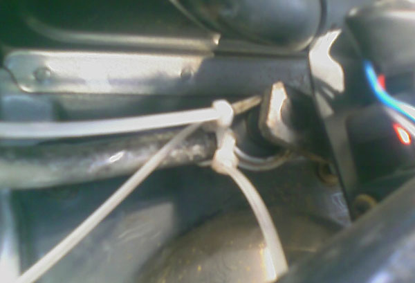 rechte 2 Kabelbinder zwischen linkem Wischergestänge und Hebelarm am Wischermotor, der linke geht dann durch die rechten Kabelbinder um das rechte Gestänge. Alle Kabelbinder ordentlich festziehen, hebt. Zwar nicht die aller schönste Lösung, aber habe ich damals im Regen gemacht. und hielt stundenlang bei Dauereinsatz und später auch bei hohen Geschwindigkeiten ( im Trockenen ).