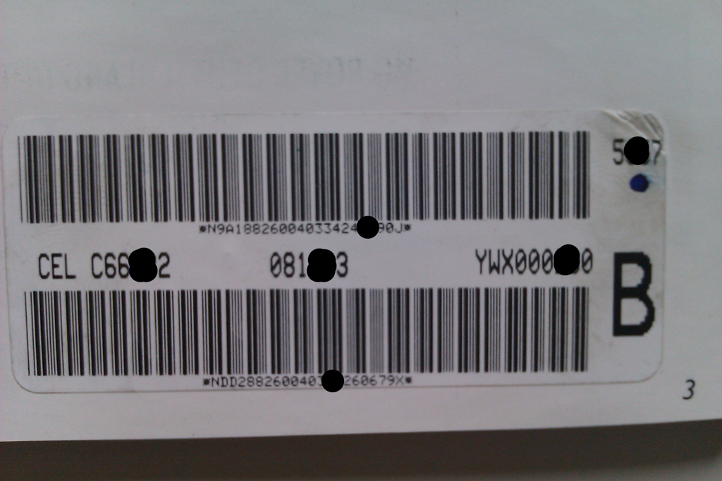 Erstmal Danke für eure Hilfe bis hier hin. Allerdings hab ich noch eine Frage. Und zwar fehlt sowohl die Schlüsselnummer, als auch der Notfallcode um den Wagen zu laufen zu bekommen ohne Handsender. Allerdings ist im Handbuch ein Aufkleber mit allerlei Nummern. Könnt ihr mir sagen welche Nummer für was ist? Ist die 4 Stellige Nummer die mit einem Punkt markiert wurde evtl der Notfallcode? (Ich habe mal bei jeder Nummer was geschwärzt zur vorsicht, nicht dass jmd auf dumme Gedanken kommt  )