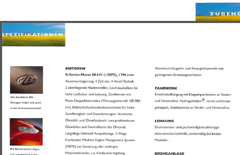 Laut einem mir vorliegenden MGF MkI-Prospekt verfügen alle Fahrzeuge bereits über eine Auspuffanlage aus Edelstahl. Stimmt das? Kann ich gar nicht glauben. Oder wurde die bei MkII-Modellen und beim TF wieder eingespart?