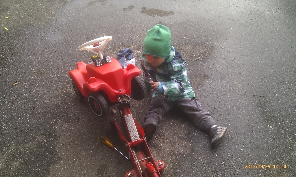 Das geht schneller als man denkt Klaus mein kleiner fängt schon an und kennt sich bereits bestens aus mit Reperaturen/Autos auch wenn Mama das nicht wollte