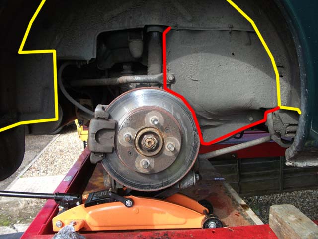 Auf den Fotos habe ich mal die Umrisse grob gelb umrandet, das rot umrandete ist der Textilschutz vom MGF.