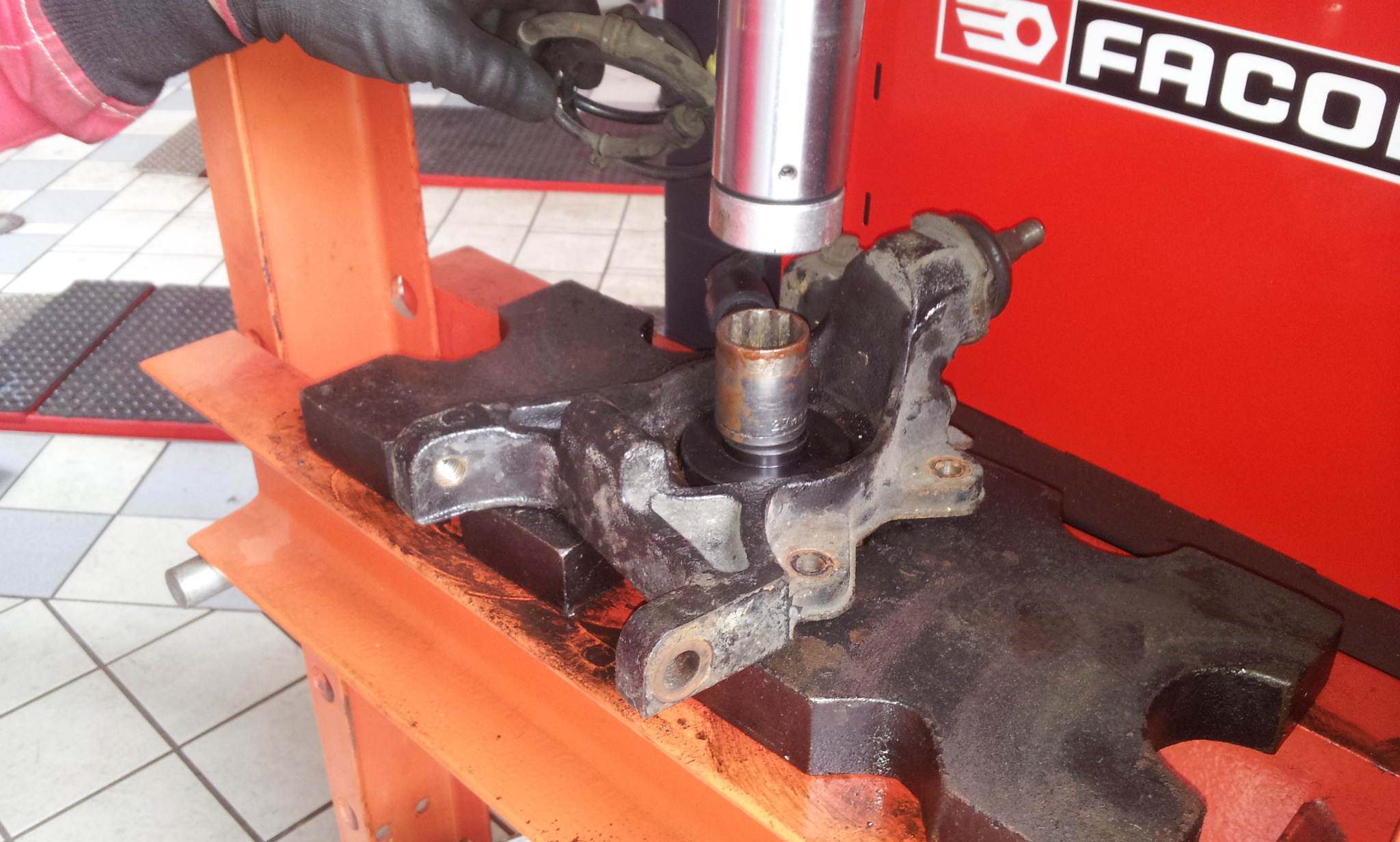 soll das werkzeug für eine presse sein? meiner meinung nach ist es aber ein unnötiger weg gleich den ganzen achsschenkel demontieren wegen lager auspressen. es geht auch gut direkt am auto mit einem abzieher, keine neue achsgeometrie nötig...