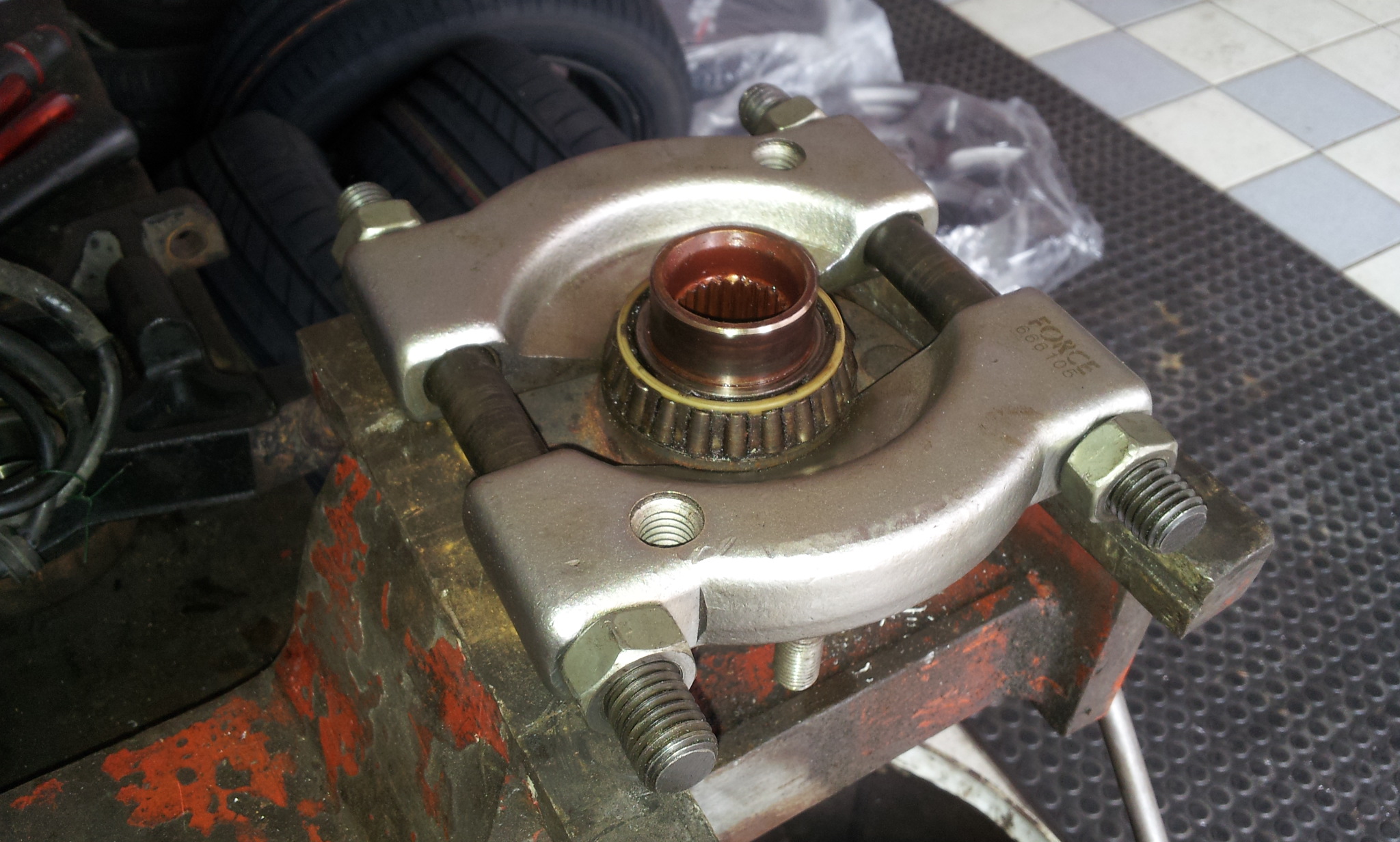 Ich meinte den Teil vom Lager: Geht wunderbar mit der Trennvorrichtung runter, ohne Trennschleifer oder Meissel