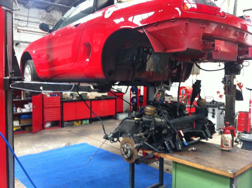 Jetzt kann man alle Arbeiten wie Zahnriemen, Wasserpunpe, ZKD usw machen, schau dir auch gleich die Kupplung an, so leicht wird ein Tausch nicht mehr werden  Getriebeölwechsel geht so auch leichter