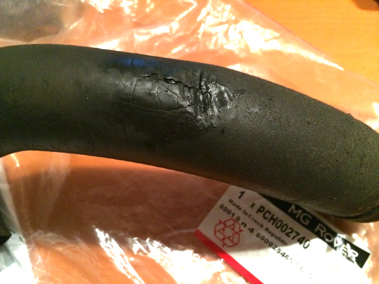 Hallo Michael, Kannst du mir sagen wie du das System aufgefült hast ohne 3 Wochen lang zu entlüften. Ich habe bei meinem TF das komplette Kühlsystem erneurt und mir steht das Auffüllen noch bevor. Übrigens haben die Chinesen bei diesem Schlauch jetzt noch einen hitzeabweisende Aluschlauch drübergezogen. Diese ganze Schläuche gab es als Kit beim MGOC (PEM101020K). Die Anzeige vom MGOC kann man hier sehen : http://vs1.textlab.io/store/data/000031079_1-a2ad7799656f4dce3f66f05dc2b213b6.png