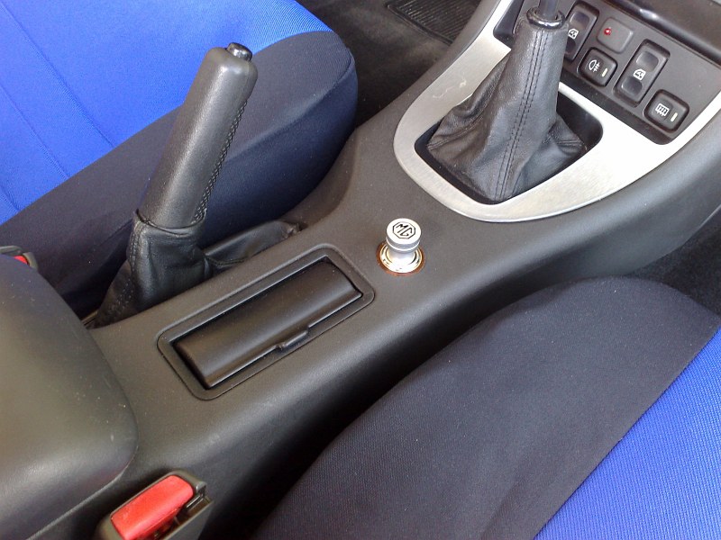 Da ich ja Nichtraucher bin, hab ich da einfach nen Blind-Deckel drauf gemacht statt dem Zigaretten-Anzünder. Aber ansonsten käme wohl auch der mit dem schönen MG Logo rein