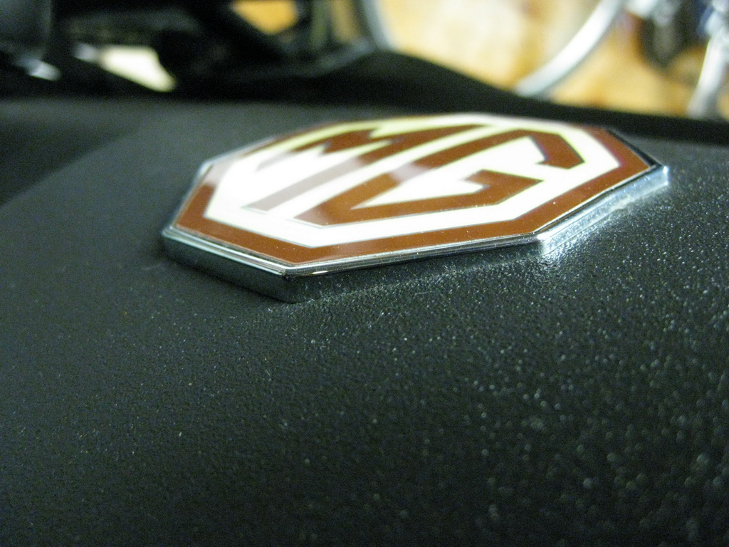 ........also - ganz so einfach ist das mit dem MG-Logo auf der T-Bar nun auch wieder nicht. Selbst wenn man ein bereits auf der Rückseite leicht gewölbtes Heck-Logo sein Eigen nennt, so ist trotzdem die T-Bar nochmals stärker gewölbt. Wenn man sich jetzt ein originales Logo auf die T-Bar pappt, wird man zu Recht sofort als Dilettant erkannt. Das passt einfach nicht .......da lässt man´s lieber ganz bleiben ....... Also ein Griff in die Trickkiste. Das Logo mit der Heißluftpistole vorsichtig rundherum erhitzen (wichtig!!!! Langsaaaaaaam an die Sache rantasten, sonst ist das Logo Schrott!) und auf einer der T-Bar entsprechenden Wölbung mit leichtem Druck erkalten lassen. Diesen Vorgang sollte man lieber ein paar Mal öfter wiederholen, als die Sache mit aller Gewalt sofort zu erledigen. "In der Ruhe liegt die Kraft .........." Ein wenig kann man auf der Rückseite des Logos auch noch mit Schleifpapier nachhelfen. Die Geschichte mit dem "doppelseitigem Klebeband" wurde ja schon zu Recht aus dem Rennen genommen und gehört ins Kuriositätenkabinet.....alles andere ist fast automatisch richtig! Anschließend könnte das Ganze dann so aussehen: Guckst du hier: Dateianhang: