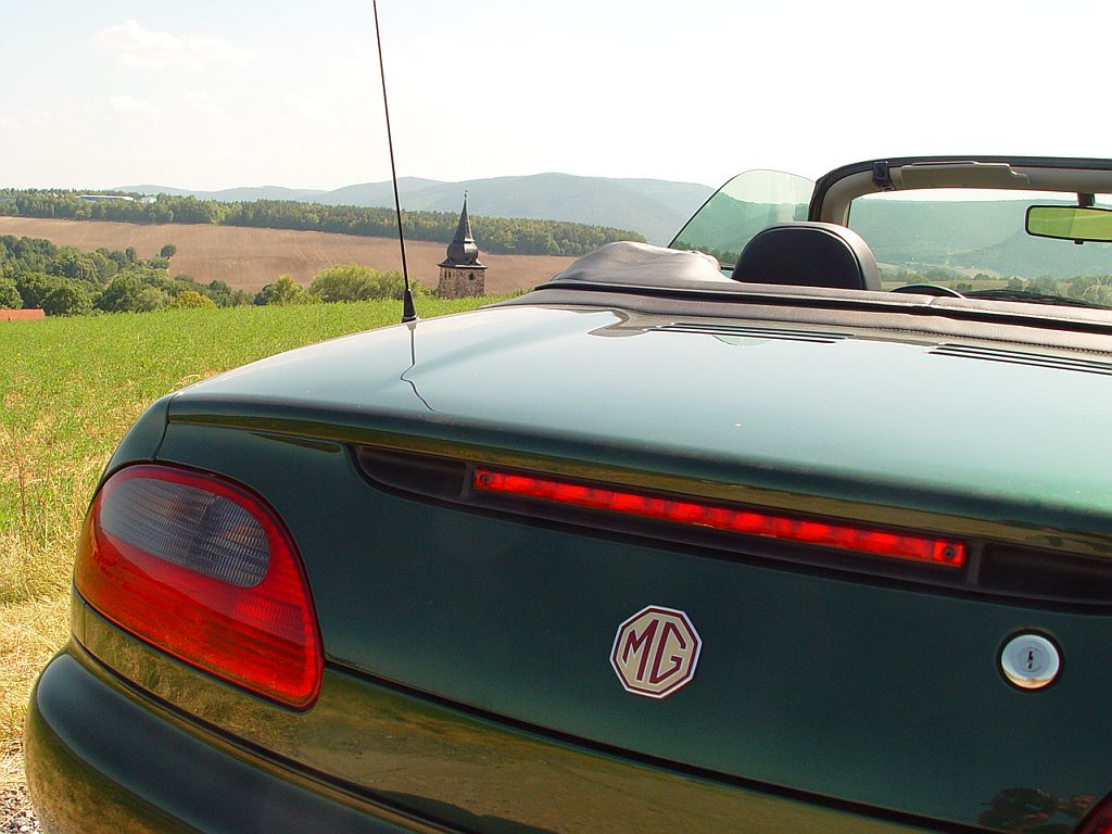 Hallo Jan, Dankeschön! Hab noch nen recht gutes Pic gefunden. Der Kirchturm gehört zu einem Örtchen (schätze mal hundert Einwohner) namens Zeigerheim, liegt zwischen Rudolstadt und Bad Blankenburg. Im Gasthof Zur Liske gibts den halben Liter regionales Schwarzbacher Pilsner für 2,10 Euro. Ne leckere Thüringer Rostbratwurst bekommt man fast überall am Straßenrand für 1,50-1,60 Euro. Da macht das Fahren und Rasten einfach Spaß, erst recht wenn man nen MG unter dem Hintern hat Grüße Daniel
