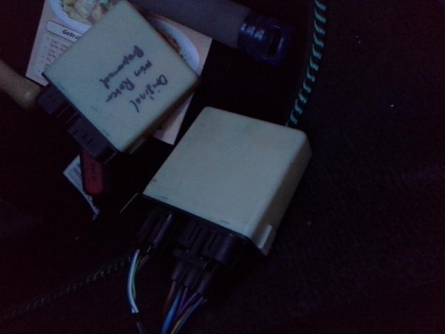 erstmal wieder mein altes steuergerät eingebaut mit alarm box unter der mittelkonsole da ich morgen zur arbeit fahren muss.