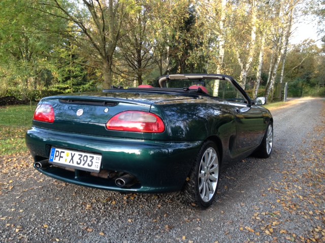 Danke für das Kompliment. Ich kann es auch immer noch nicht fassen, dass für alles in allem 2000 Euro (Kauf des Fahrzeugs inbegriffen) aus einem MGF, der verschrottet werden sollte, ein echtes Zustand 2 Auto geworden ist. Und das unglaubliche ist: An dem Auto gibt es nicht eine einzige Roststelle, obwohl dieser Winter der erste Winter ist, in dem es nicht auf der Straße ist. Okay, auf den Auspuffblenden gibt es jeweils eine Roststelle Am liebsten würde ich mich bei der Hinterhofwerkstatt bedanken, die dem Vorbesitzer erklärt hat, das Effchen würde keinen TÜV mehr kriegen. Ich habe deren Namen aber von den Nummernschildhaltern getilgt und bedanke mich lieber bei Schmieder in Karlsruhe-Durlach, dass die den Wagen bis zum Sand von 230.000 Kilometern so hervorragend in Schuss gehalten haben. Matthias PS: Falls jemand das Autochen in Realität sehen will: Es steht im nächsten Jahr auf dem Stand des MG Drivers Club Deutschland in Halle 7 der Retro Classics in Stuttgart.