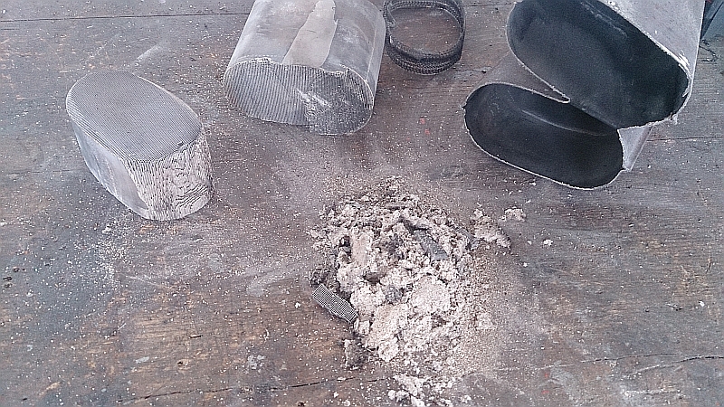 Mit durchschauen war da nix mehr und im endtopf polterte auch ein größeres undefinierbaren teil herum, aber ich hätte ja die leere hülle wieder schweißen und einbauen können;-))