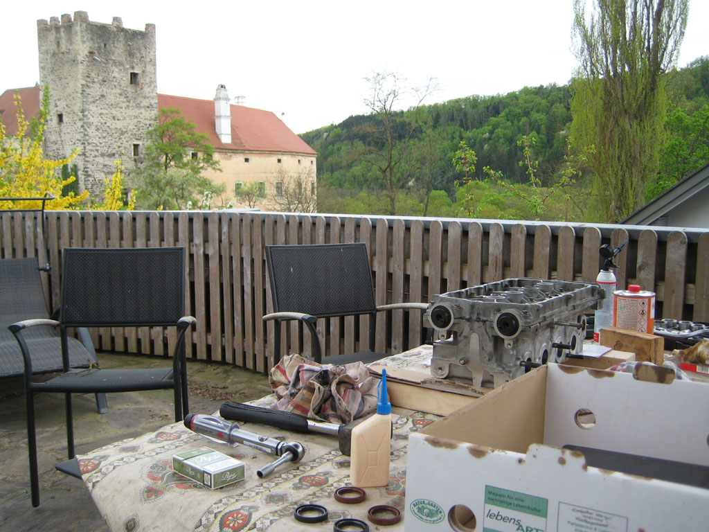 Danke Mannen! Kopf ist geplant (0,11 mm), sauber gewaschen, abgedrückt und Vakuumgetestet (die Ventile sind super dicht und wie neu bezüglich der Führungen), Ventilschaftdichtungen getauscht und fertig zum Einbau...  Fotos folgen. Jetzt stärkere Ölschiene montieren, Kopf drauf und fertigmachen (dieses WE). Neuer Kat (135 Euro  ), neue Zündspulen und Lamdasonden, Lotus 74 Grad Thermostat, der mit dem Ventil, und die Mgine funzt dann hoffentlich wieder. Melde mich dann wieder mit wiegesagt ein paar Fotos...  @Speedsgod: Ich habe in meinem Schrauberdasein schon so manche Schraube abgerissen, aber das hat sich dann im Laufe meines Lebens schlicht geändert, jetzt benutze ich Drehmomentschlüssel!