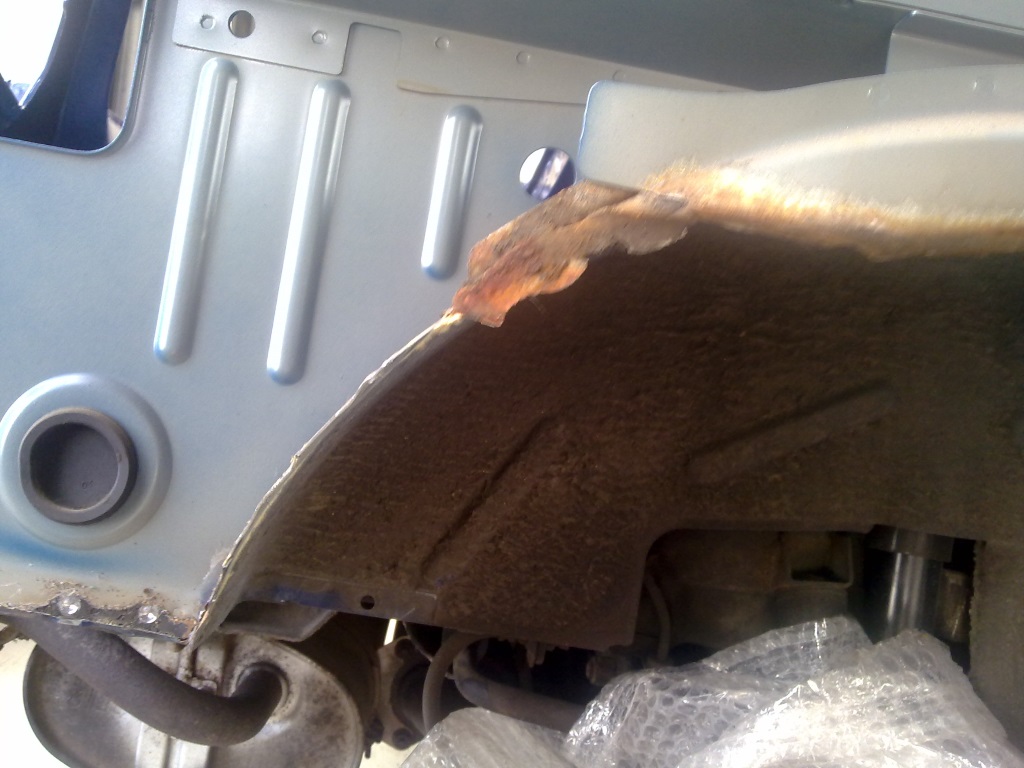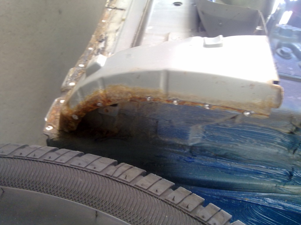 Ich bin erstmal froh das es wirklich nichts tragendes verformt hat. Was mir aber gar nicht gefällt ist der Rostzustand. Besonders hinten wo die Verformung war das Seitenteil schon richtig flächig angerostet innen im Hohlraum. Kann aber auch von der Lufthutze kommen.