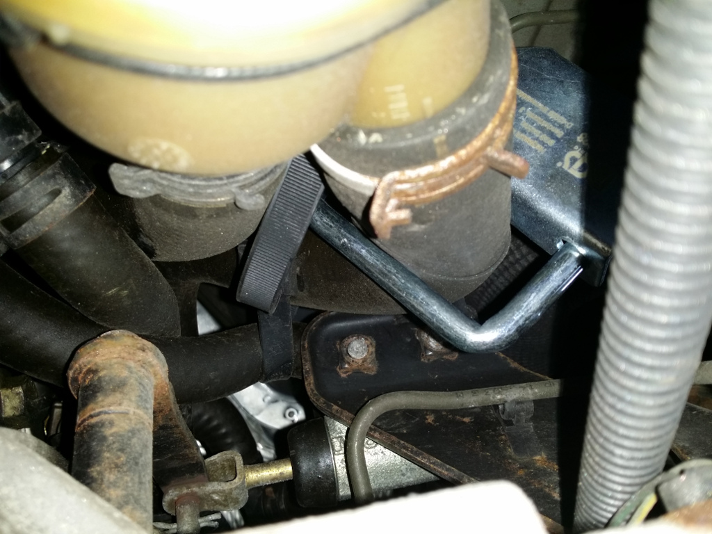 Da kommt man fast gar nicht dran Wenn die Kiste aufgebockt ist, braucht man von oben einen Hocker oder Schemel, von unten die üblichen Kinderarme mit drei Ellenbogen auf 25 cm. Ich hab mich dann für die erste Version (mit Schemel) entschieden, und das auch noch in der Öffentlichkeit, auf meinem Stellplatz an der Dorfstraße, weil ich ja nicht mehr in die Halle fahren konnte.  Ich hatte das PRT allerdings auch noch drin, eventuell geht das von unten besser, wenn das Teil draußen ist. Oben sitzt die Fleischwurst an dem Verteilerstück und bei mir war die Schelle dort so gedreht, dass an ein normales Drankommen mit der Zange nicht zu denken war. Ich hab die dann ganz brutal aufgebogen, wurde ja eh ersetzt.