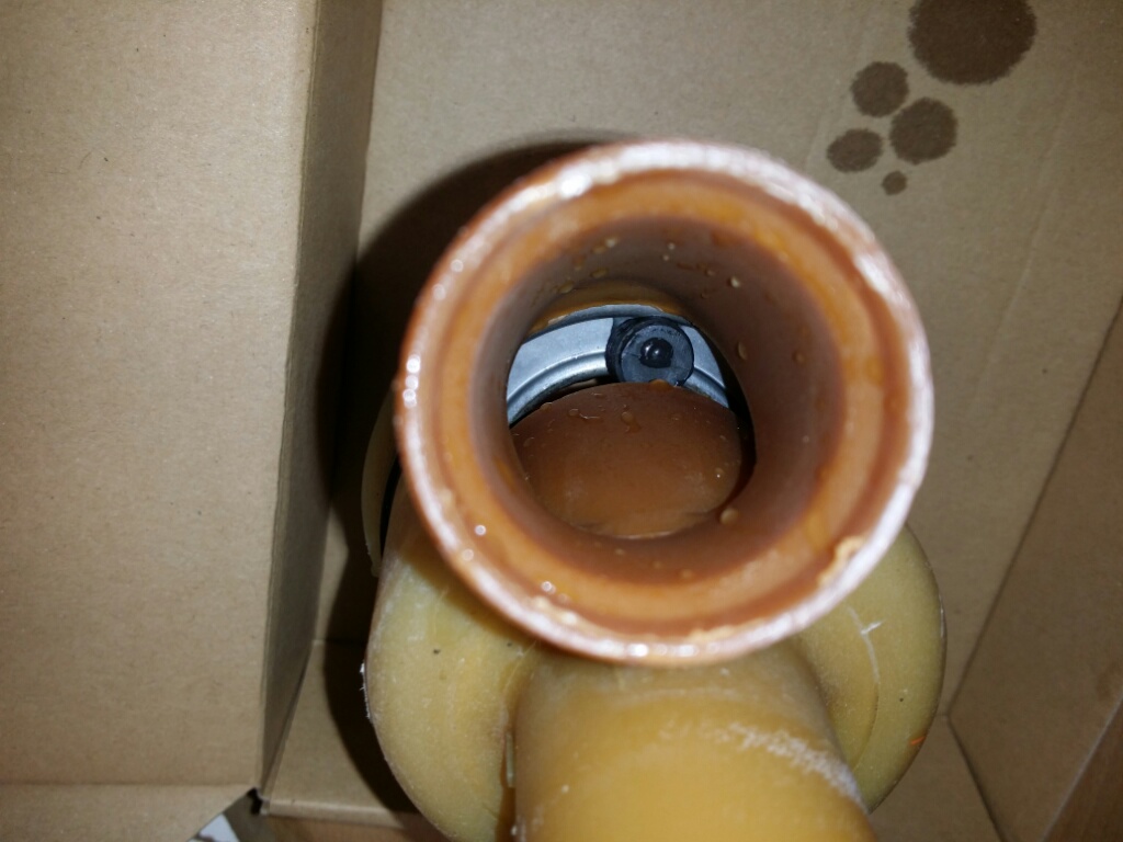 Klar ist das Zeug süß, haben die Ösis doch in den Achtzigern ihren Wein mit “veredelt”. Zum Problem: Schlauch drehen, von oben einen flachen Schraubenzieher reinschieben, der Schlauch geht schon runter. Und die Klemmschellen würde ich eh wegschmeißen und stattdessen welche zum Schrauben aus Edelstahl draufmachen. Was die Fleischwurst angeht, das ist bedenklicher. Der hat bei mir letztens den Geist aufgegeben und ich stand im Dampf  Problematisch war vor allen, dass er genau da wo die Pelle abgeht dann am Hitzeschutz vom Auspuffkrümmer reibt. Da war natürlich irgendwann Essig. Die neuen haben ein Gewebeband drum. Und das Schutzblech habe ich an der kritischen Stelle mit einer Delle versehen, das sollte jetzt halten.