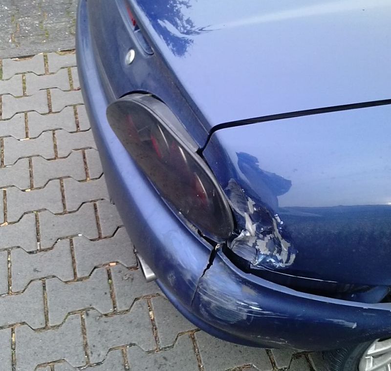 Die Beule im Seitenteil lässt mich nichts gutes erahnen... sie ist quasi von seitlich hinten nach vorne an dem Wagen hängen geblieben.. beim links abbiegen..