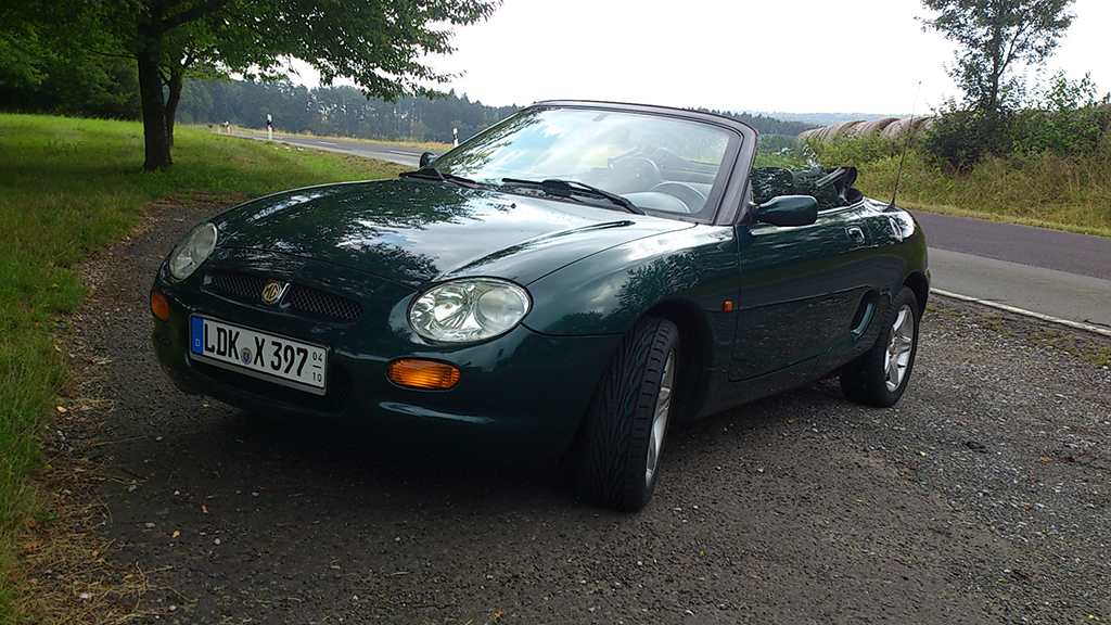 Hallo liebe Forenmitglieder, habe gerade eine MGF VVC von 97 erstanden. Der Weg zu dem Fahrzeug war kurz, aber intensiv. Suchte ein Cabrio/Roadster mit Charakter für etwa 5t € --- was bleibt einem da übrig? Wenig, wenn man den MGF mal probegefahren ist, denke ich... noch zumindest  - Hatte lange ne Barchetta im Blick, aber: pffft... MGF! Das Forum hier hat mir jedenfalls schon sehr geholfen bei der Kaufentscheidung - danke der ganzen Community dafür! Es ist ein MGF VVC von 97 (78t km) in Racing Green geworden - mit MLS Zylinderkopfdichtung, SS Kühlwasserrohren (unten und am Motor selbst), 52er Alu-Drosselklappe und K&N 57i Luftfilter geworden (hat genau so TÜV bekommen  )- letzterer offen überm Motor (nach allem was ich gelesen habe kommen mir natürlich die Fragen: wie problematisch ist die angesaugte warme Luft? wie wichtig die Einstellung des Leerlaufs nach dem Mod? Lieber zurückbauen und Platten-Sportfilter einsetzen? (TÜV in Zukunft?) - ist aber vielleicht der falsche Thread dafür......). Ansonsten wirkt das Auto TOP gepflegt und ich freu mich sehr drauf (hole ihn Sonntag erst ab...). Nur verbesserte Bremsen stehen für mich auf dem Zettel - insgesamt will ich das Auto aber v.a. erhalten und genießen und nicht tunen / modifizieren. Freue mich auf die Teilnahme hier, wenngleich sicher erst mal als 'NOOB'  Liebe Grüße, Christian