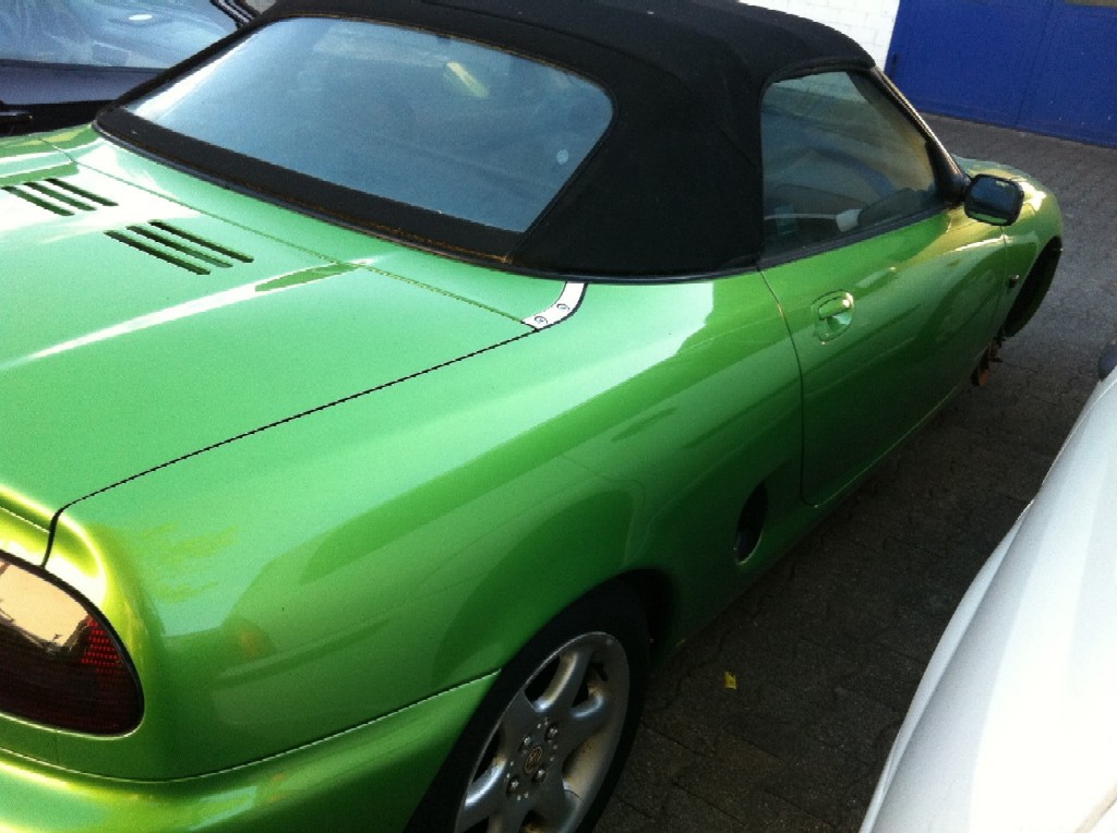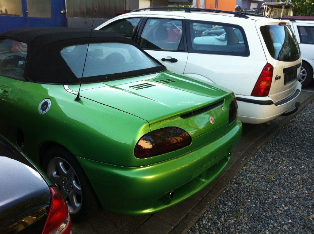 ich möchte mich kurz vorstellen. Mein Name ist Andreas und ich komme vom Hochhrein, nahe der der Schweizer Grenze. Seit letztem Wochenende bin ich Besitzer eines MGF Baujahr 1998. Ich bin eher zufällig an das Fahrzeug gekommen, denn normalerweise verbringe ich meine Schrauberfreizeit mit Fahrzeugen made in GDR (DDR). Das MG stand bei einem befreundetem Mechaniker schon seit 4 Wochen auf dem Hof und sollte verschrottet werden. Der Grund hierfür liegt in einem defekten Traggelenk vorne rechts unten, das während der Fahrt das zeitliche gesegnet hatte. Mein Kollege bot mir an, die Kontaktdaten des Besitzer heraus zu suchen damit ich mit diesem Verbindung aufnehmen kann. Das habe ich dann auch getan. Nach kurzer Zeit war man sich einig. Am Sonntag hatte ich dann in Radolfzell am Bodensee die Papiere beim Besitzer abgeholt. Ich denke ein Preis von 250€ ist ganz okay. Die unteren Querlenker möchte ich diesen Samstag noch tauschen.