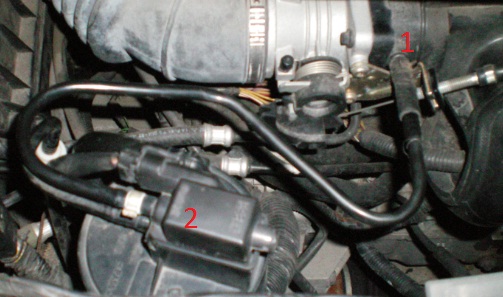 Ich habe den Unterdruckschlauch direkt an der Drosselklappe (Bild rote1) abgemacht, und da war ein Unterdruck da.
