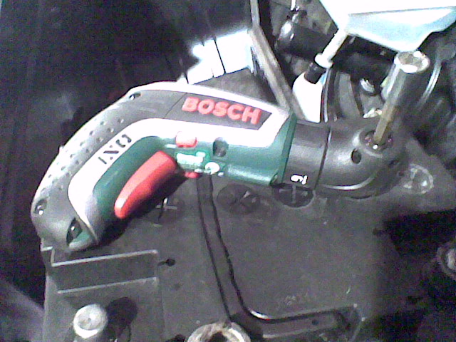 Ist ein Bosch IXO Akkuschrauber, den gibt es im Kit mit zwei Adaptern, eine 90 Grad Umlenkung und ein Versatzstück zum Arbeiten in Ecken. Damit hat man auch die Lüfter-Widerstände in unter 10 Minuten raus und wieder drin, weil eine LED zur Beleuchtung des Arbeitsbereichs ist auch noch dabei. Hoffe es hilft, Mykel