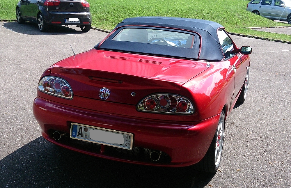 _________________ MGF VVC, Flame Red, LHD, 4.4.1997 TF 135 Monogram Spectre, RHD, 18.6.2004 ZR 160 3-Türer, Solar Red, LPG, LHD, 21.8.2001 Midget Mk3 RWA, Blaze Red, LHD, 12/1972