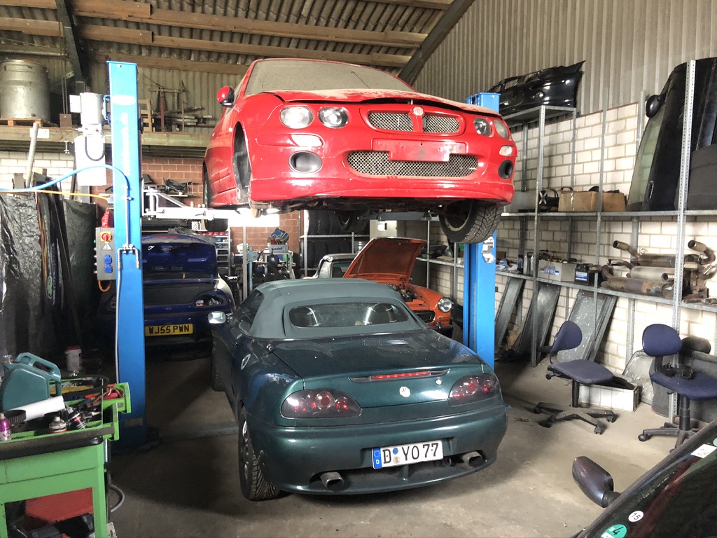 Ob Du's glaubst oder nicht... der MG steht immer noch unverändert in der Garage seit September... Ich träume noch von einer kleinen Scheren-Bühne für die Garage.... deshalb hab ich das mühsame Aufbocken auf die 4 Stützen noch nicht begonnen. Leider ist der Investitionsantrag noch nicht unterschrieben....
