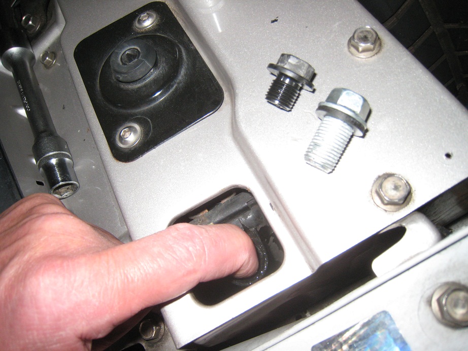 Die Schraube vom Suzuki ist schon drin. Gummischeibe vom Original umgesetzt, etwas Heisswasserfett dran (für Armaturen), und bequem von Hand die ganzen 20mm reingedreht, und mit 15er Nuss und Verlängerung von Hand angezogen .