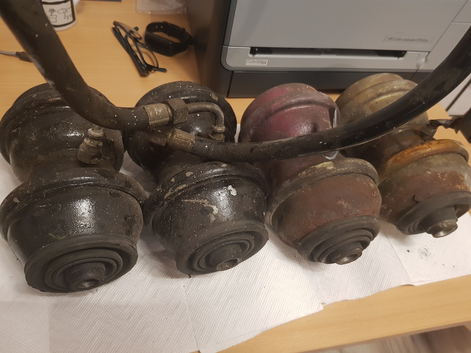 Das linke Paar wurde auf jeden Fall schonmal sandgestrahlt und lackiert.