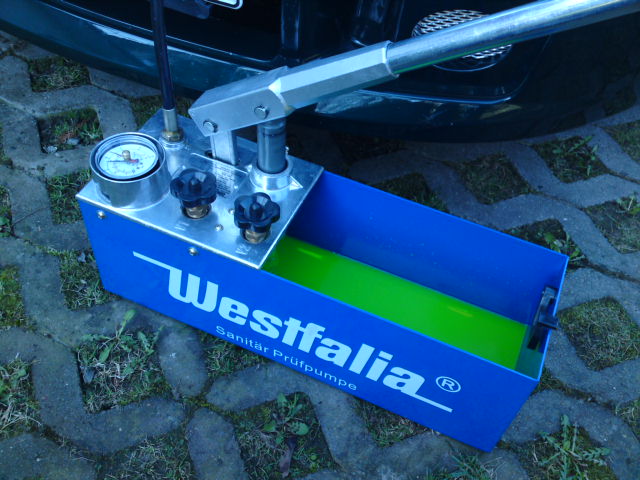 So, hier nun das Ergebnis meiner Selbstbaupumpenaktion :up: Ist ziemlich einfach, anklemmen, entlüften dann schön aufpumpen. Zwischendurch immer mal wippen und messen. Ich hab auf ca. 30bar aufgepumpt auf beiden Seiten und es scheint zu passen. Das werde ich nun erstmal nen Tag "sacken" lassen und morgen noch mal messen und ggf. korrigieren.