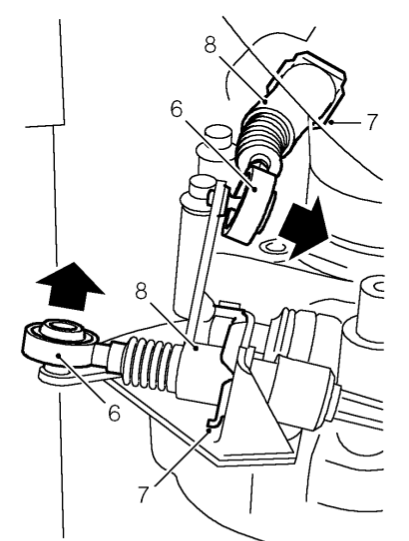 super-constellation hat geschrieben: Na dann werde ich wohl doch in den sauren Apfel beißen müssen und Toyos draufziehen lassen. Was ist an den Toyos denn ein „saurer Apfel“? Das sind – nach übereinstimmender Erfahrung von -zig MGF und TF Fahrern im In- und Ausland hervorragende Reifen für das Fahrzeug. Allerdings brauchen sie eine Zeit (ca. 600-700 km), bis sie richtig eingefahren sind. Was den Verschleiß angeht habe ich bei dem Falken gerade nochmal nachgemessen. Die sind jetzt in der 2. Saison drauf mit derzeit ca. 13.000 km Laufleistung. Profiltiefe ringsum ist noch 5-6 mm. Wahrscheinlich halten die also auch noch nächstes Jahr (fahre mit dem Wagen derzeit nur so 1.000 km im Monat), zum Frühjahr 2016 kommen dann neue drauf. Einen anderen von dir erwähnten „Exoten“ fahre ich übrigens auf dem MGF im Winter, Kumho I’ZEN KW23, und zwar in deinen Größen (185 vorn, 205 hinten). Damit komme ich auch im Schnee und auf Eis die (zugegebenermaßen lächerlichen) Steigungen am Niederrhein rauf. Wie schon gesagt, vergiss alles was du bisher über Reifen gewusst hast, gerade mit einem Golf sind die Wägelchen nicht im Entferntesten zu vergleichen. Nochmal zur Schaltung: So wie du das beschreibst, kann das üblicherweise betroffene untere Schaltseil gar nicht der Auslöser sein, denn dann könntest du nicht mehr in den 4. Gang schalten. Außerdem schlabbert’s bei dir ja von links nach rechts. Also ist es das obere Schaltseil, das aber eigentlich nie reißt. Das heißt „oberes“ Schaltseil, weil es oben um das Getriebe herumgeführt wird, ist daher etwas schlechter zugänglich zur Kontrolle. Hier mal die Zeichnung aus dem Werkstatthandbuch von der Schaltwippe am Getriebe, von unten gesehen: Dateianhang: