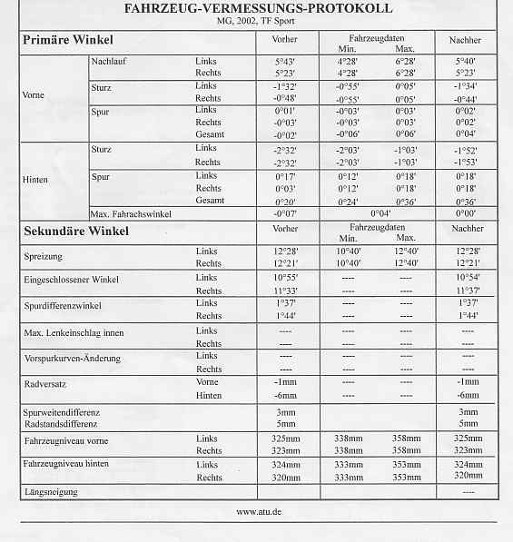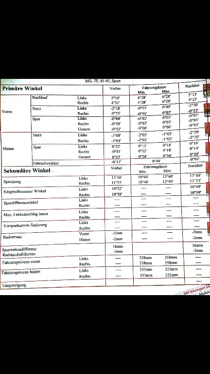 Hab ja auch dieses Jahr die Werte hochgeladen. http://www.mgboard.de/viewtopic.php?f=2&t=9835Werd nochmal die neuen Werte reinstellen die Tage. Es wird sowieso so viel eingestellt, ich frag mich manchmal, wo die Werkstätten wirklich die Sollwerte her haben?!?