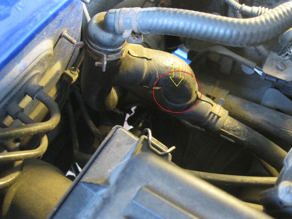 Menno, Jan hatte recht Heute hab' ich die neue Dichtung erhalten. Dann hinten auf die Rampen drauf und vorne hochbebockt. Von unten mit Lampe nach Kühlmittelspuren gesucht, die waren auch sichtbar, an einem der beiden dicken Schläuche zu den Edelstahlrohren. Also von oben geguckt, da war etwas Feuchtigkeit an einem Schlauch. Hmmm. Motor an, laufen lassen, nochmal geschaut und siehe da, der Schlauch ist undicht. Scheint PEH100940 zu sein, direkt oben am Abzweig in der Ecke. Das (von unten) fotografierte Bild zeigt direkt die schadhafte Stelle, im zweiten Bild (von oben) ist der Bereich rot markiert und der gelbe Pfeil zeigt auf die schadhafte Stelle (die sich natürlich an der Unter - bzw. Rückseite befindet). Vielen Dank nochmal für die Hinweise! Grüße aus Tauberbischofsheim Christof