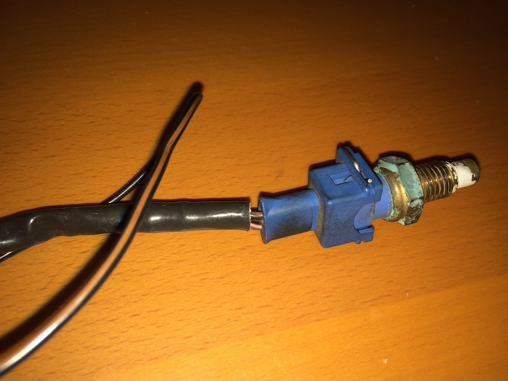 ich habe schon überall gesucht, finde aber leider nichts passendes. Letztes Wochenende wollte ich endlich die defekte Kühltemperaturanzeige reparieren. Ich hatte mir den passenden Sensor bestellt, aber nach der Demontage musste ich feststellen dass nicht der Sensor defekt ist sondern der Stecker vom Kabelbaum. Die Kabel waren abgemagert und beim Abziehen des Steckers ist dieser in seine Einzelteile zerbröselt.