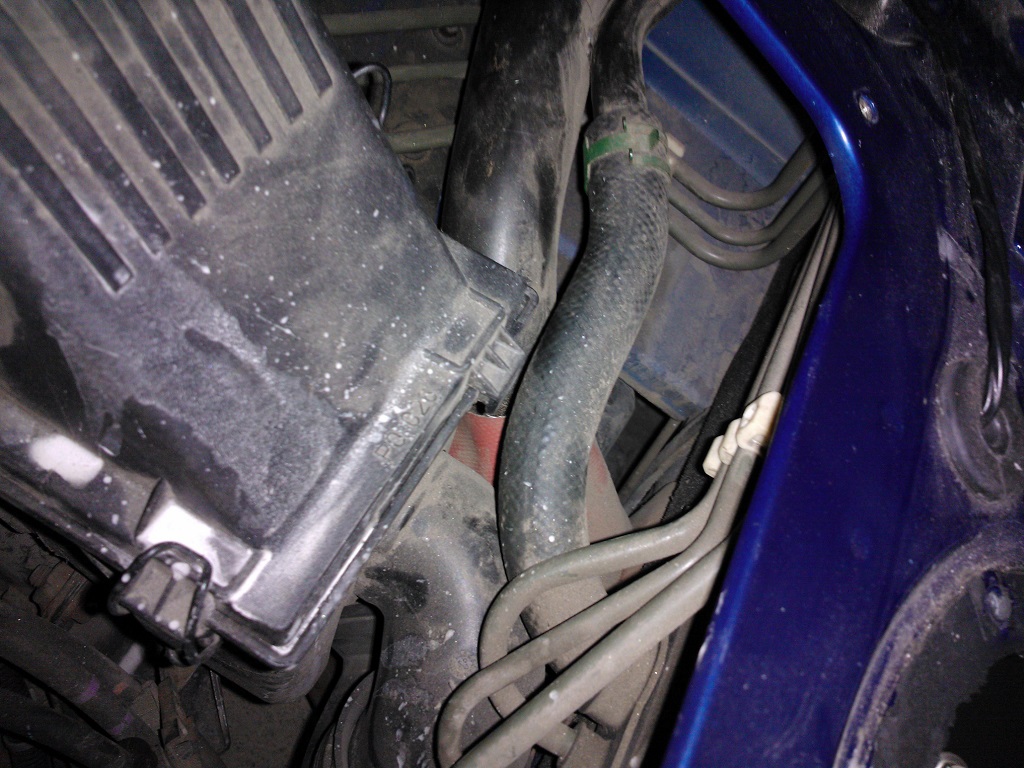 Ganz im Sinne des Threads konnte ich das Problem heute beseitigen. Ich habe das Gummistück gegen ein neues gewechselt. Um das Teil zu wechseln musste ich folgende Teile ausbauen: - Luftfilterkasten Oberteil (mit Schlauch zur Drosselklappe) - Luftfilterkasten Unterteil - Halterung Luftfilterkasten (das Teil wo auch die Aufnahme für den Benzinfilter und die Clips für die Bowdenzüge dran sind) - Tankstutzen muss gelöst aber nicht ausgebaut werden. So sah das alte Teil aus: Dateianhang: