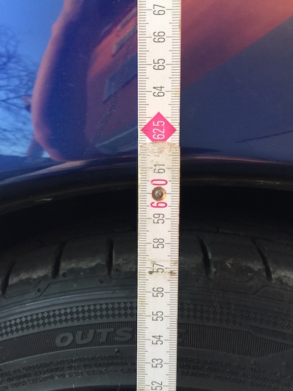 Danke für Deine Antwort crimak42. Werde morgen nochmals bei der Werkstatt vorbeifahren und hoffen, dass die mir meinen Kleinen möglichst kostenfrei wieder "hoch"-pumpen Man misst doch bis zum Radhaus? Oder nimmt man die lackierte Stelle des Kotflügels zum Messen? Da der Techniker vom Boden aus misst, werde ich ihn bitten, die 605mm (=320mm v.d. Narbe) auf 651mm (366mm, morgen gibt es 14°C Sonne in Köln  ) zu korrigieren. Danach vereinbare ich gleich mal einen Termin zum Einstellen der Spur. Hat da jemand auch noch einen guten Tipp im Kölner Raum? Liebe Grüße und vielen Dank Euch! Tobi
