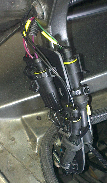 Da muss der Hauptkabelbaum auch aufgedröselt werden. Die Befestigung am Kofferraumdeckel hab ich entfernt. Jetzt geht es so halbwegs... 8-)