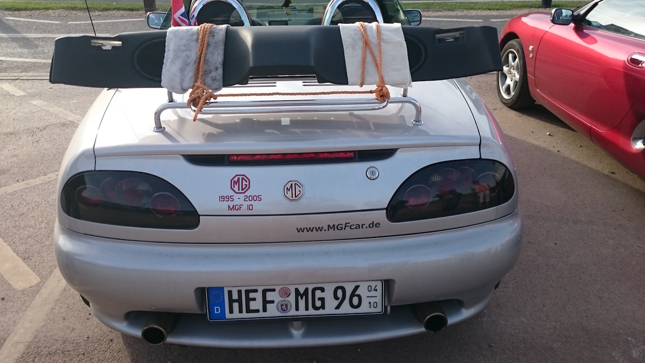 ich bin neu hier im mgboard. Habe aber in den letzten Tagen einiges gelesen hier. Zu meinem Auto. Ich fahre einen MG F aus 2001er Produktion. LHD, MPI, anthrazit, Klima, 16 Zoll Er wurde 2002 das erste mal zugelassen. Ich habe ihn dann im März 2003 gekauft. Habe mit dem Auto auch schon ausgedehnte Touren in der Zeit gemacht. Die weitesten waren Rom und Stockholm. Auf diesen hat er mich nie im Stich gelassen. Bin ihn aufgrund von Nachwuchs in den letzten 4 Jahren so gut wie nie gefahren. Wollte ihn jetzt wieder voll in Betrieb nehmen. Leider fand das mein F nicht so lustig und hat das mit starken weißen Rauch quittiert. Da es jetzt der dritte HGF ist habe ich mich dazu entschlossen den Kopf zu wechseln. Hab mir auch schon einen Kopf von einer Lotus Elise 135 Sport besorgt. Weiter wollte ich Edelstahl Kühlleitungen, ein PRT und Stahlflexleitungen für die Bremse nachrüsten.