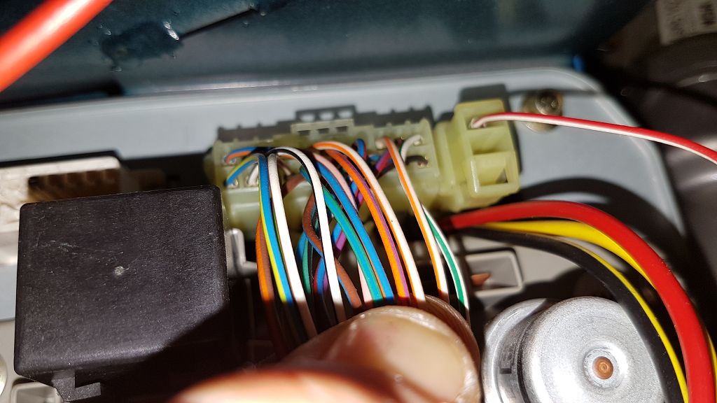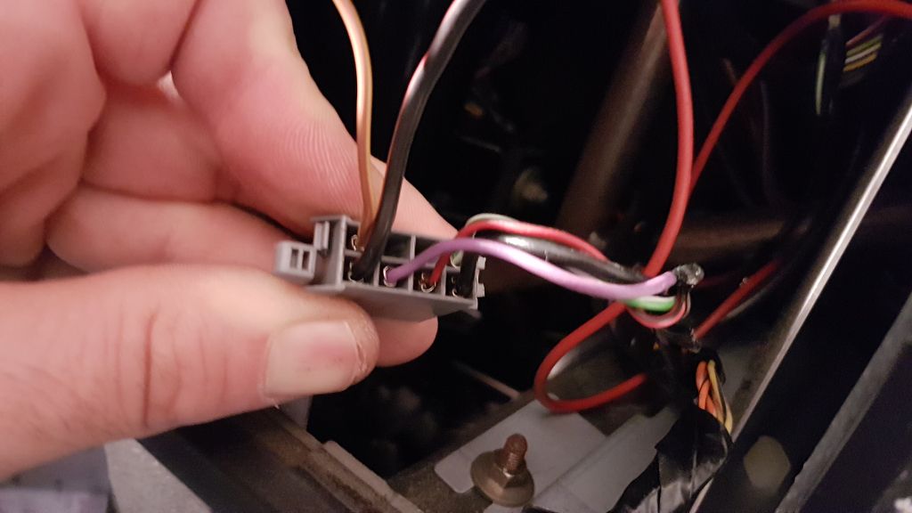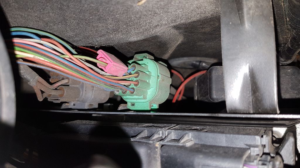 Stecker am Steuergerät im Kofferraum, hier wurde Grün-Braun abgezweigt