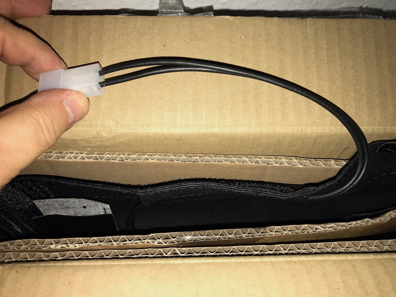 Um die Situation hier mal aufzuklären und die unbestimmten Vermutungen zu widerlegen: 1. ein Stecker ist natürlich dran 2. Das Kabel ist links innen unter dem Klettverschluss eingetascht und von da ab in der Tat recht kurz, so 20 cm schätze ich. So flattert da dann auch nichts rum und ein Abbrechen der Leitung an der Scheibe (wie ich es bei dem BAS-Modell mal hatte) ist sehr unwahrscheinlich. Beweisfoto zur Abwehr von Fake News  : Dateianhang: