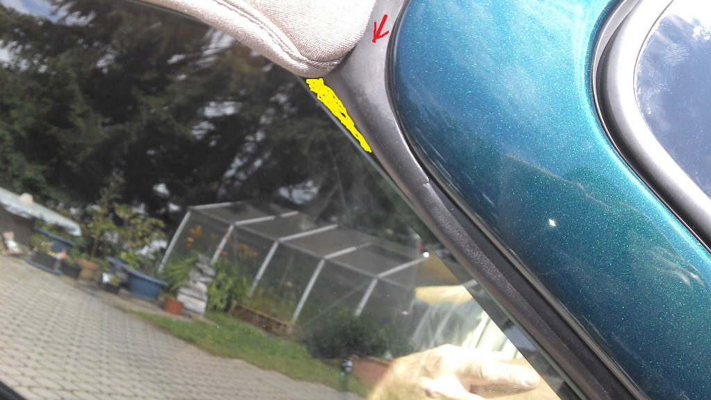 leider scheitern wir an der Beifahrer Seite da es vorne beim Übergang von A-Säule zum verdeck absteht 5mm Luft sind dazwischen hab noch ein paar Bilder gemacht