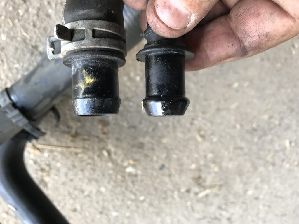 Und die schlackern dermaßen in den Schläuchen, das wird nie dicht ! dachte ich mir. Es gibt nun zwei Alternativen: Entweder die Schläuche zum Heizungsrohr im Innenraum auch tauschen. Aber a) hatte ich die nicht und b) muss dazu elendig viel aufgemacht werden. Also hab ich probiert, die Verbinder vom F in die Schläuche vom TF zu bekommen, und mit etwas Schmiermittel ging das auch ganz gut: Dateianhang: