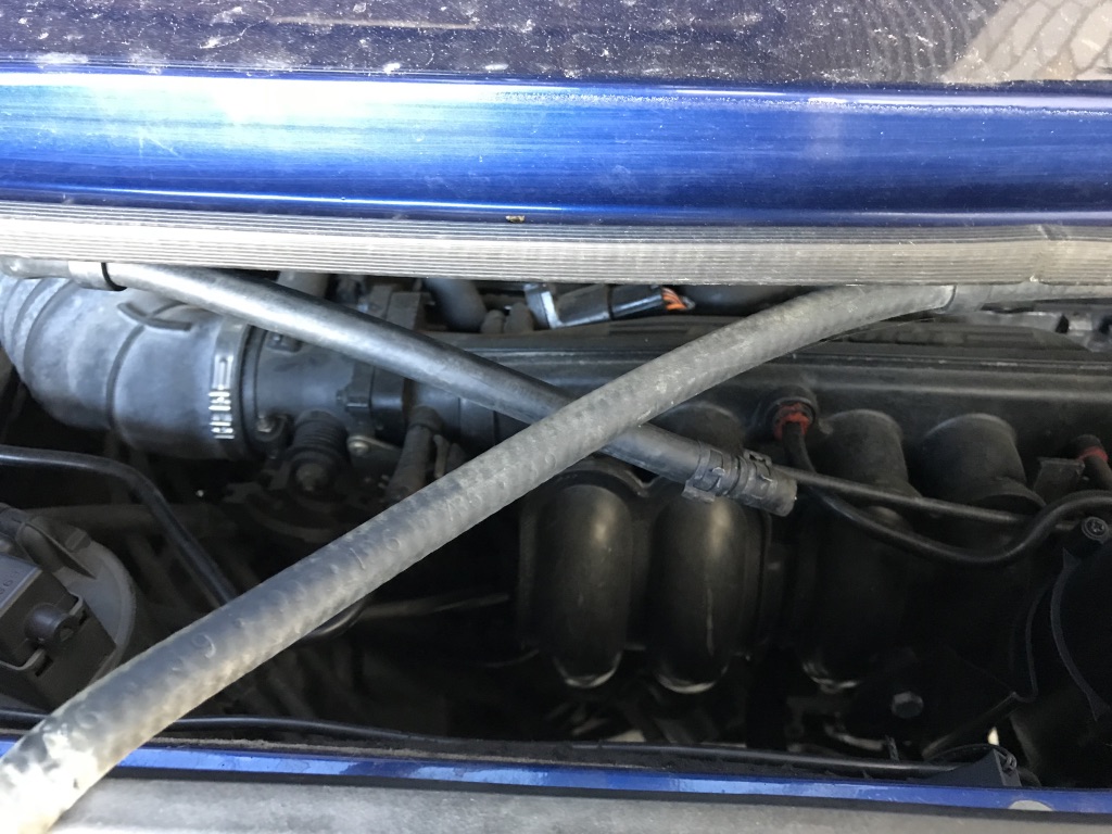 So vorbereitet konnte dann der Schlauchsatz mit Thermostat eingefädelt werden. Dass man dabei mehrfach unters Auto und wieder nach oben muss ist wohl klar. Aber irgendwann passt es dann. Wichtig ist, auf die Lage von Leitungen und Schaltzug zu achten. Dateianhang: